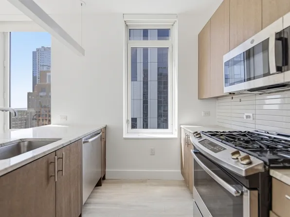 This unique one-bedroom unit on the first floor offers an unparalleled living experience. Featuring a stunning designer kitchen complete with top-of-the-line appliances, this unit is the epitome of modern luxury. Expansive floor-to-ceiling windows bathe the space in natural light, while custom closets provide ample storage.