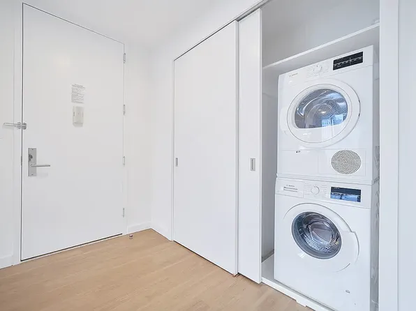 Welcome to The Magellan, a full-service luxury building in the heart of NYC. This sun-flooded, spacious 1-bedroom (convertible to 2) apartment has been completely renovated and is ready for you to call it home. It features breathtaking NYC views, high ceilings, new floors, excellent natural light, stainless steel appliances, an in-unit washer/dryer, central air conditioning and heating, a dishwasher, and a renovated bathroom.