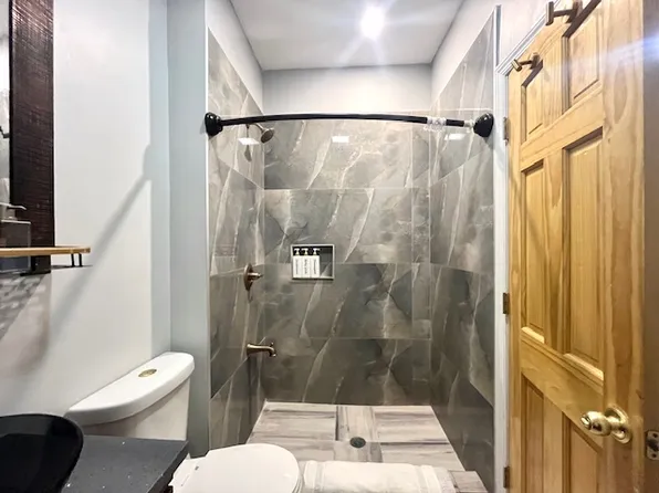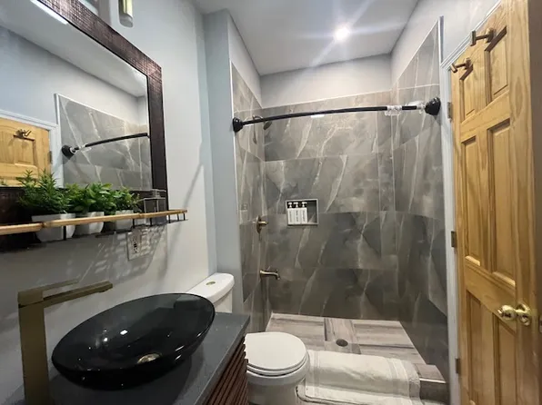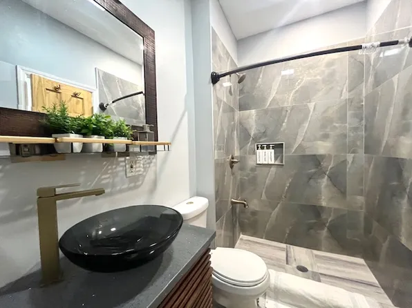 This newly built home features a massive living room window, exposed brick, custom LED lighting, a spacious open living room, top of the line stainless steel appliances, including a Bertazzoni stove, custom Caesarstone countertops, central AC, ample closet space, and true King size bedroom.