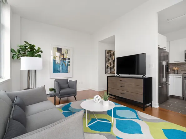Corner 1 bedroom with great open views down Broadway. This bright apartment features dramatic floor to ceiling corner windows in the living room, a large open u-shaped kitchen with eating bar, and a fantastic walk-in closet.