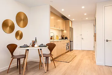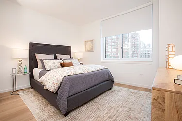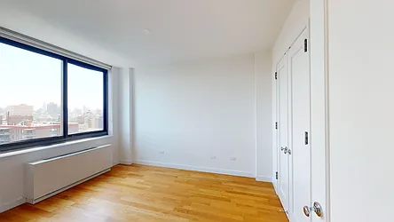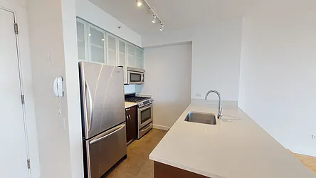 Bright 1 bedroom with open North views. Apartment features a spacious windowed kitchen with stainless steel appliances and stone countertops, wood floors throughout, and ample closet space including a linen closet. The Melar offers modernly elegant apartments and a newly renovated lobby, fitness center and resident lounge with terrace.