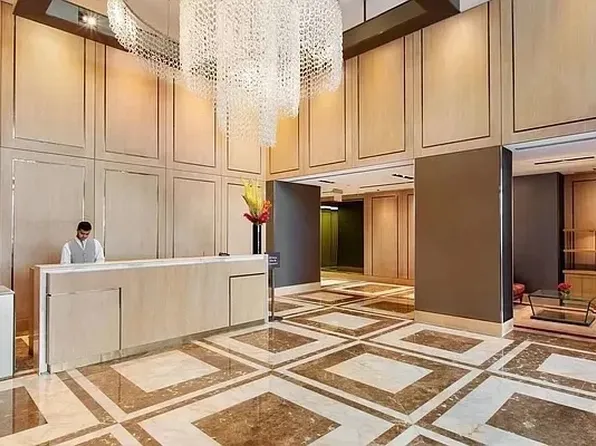 This rarely available 2-bedroom, 2-bath home boasts soaring ceilings, exquisite herringbone floors, and dramatic floor-to-ceiling windows that flood the space with natural light throughout the day.