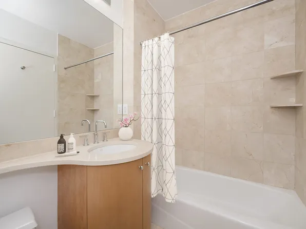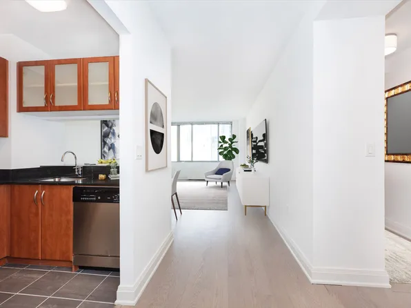 Renovated spacious one-bedroom touts a private balcony, great light and open views. This is the largest one-bedroom line in the building. A spacious dining area off the galley kitchen has custom solid wood cabinetry, stainless steel appliances, and granite countertops.The living room is large enough to flex to a two- bedroom. In addition, this home comes with abundant closet space.