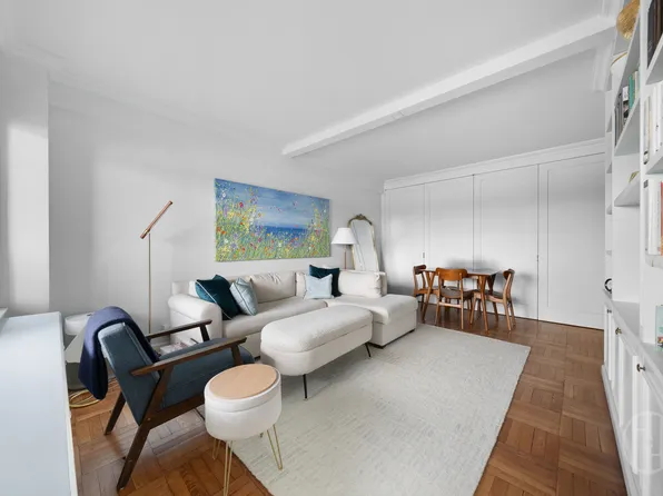 This LOW MAINTENANCE LUXURY LIFESTYLE w/ $375 PARKING, OUTDOOR POOL, GYM + more will beckon you. The Perfect Pied-a-Terre or Primary Residence, 17D is a recently RENOVATED, QUIET, WEST-FACING 1 BED / 1 BATH Home w/BALCONY in a FINANCIALLY FIT Coop with No Underlying Mortgage. Showing Every Day & Eve by Appointment. Move-Right-In to this High Floor D-Line Home (mirror image of the E-Line) and enjoy….
