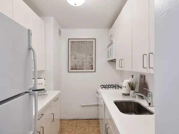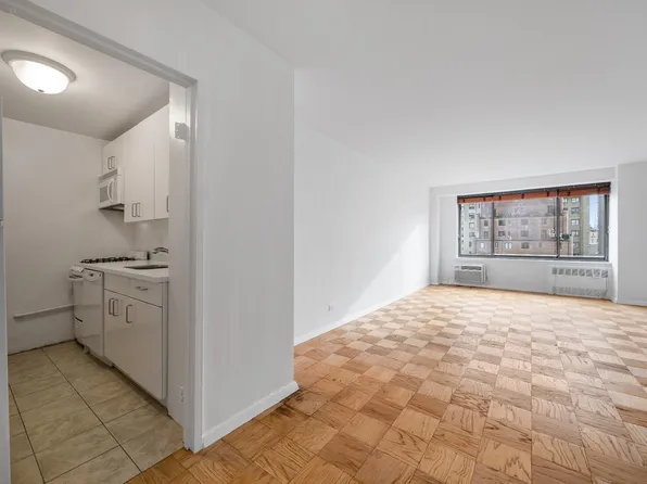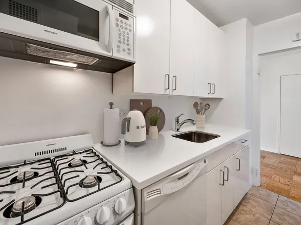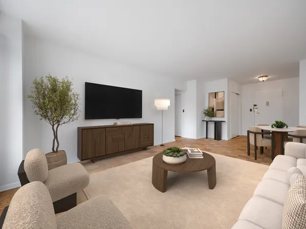 Located in a lovely full service condominium building, 8V is a charming, post-war one bedroom. The V-line is facing south with bright open city views. Perfectly proportioned, the apartment has a large entryway, hardwood floors, generously sized rooms (18'4 x 12'8 Living room/Dining room and 16'6 x 10'9 Primary bedroom), roomy closets, an updated bathroom and a wide galley kitchen.