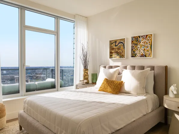 Welcome to The Orchard, Residence 42E, a corner two-bedroom, two-bathroom home offering a sun-drenched, open layout framed by oversized windows, soaring ceilings with remarkable city views. Enjoy a sleek kitchen with quartz countertops, two-tone cabinetry, and a Samsung stainless steel appliance suite, plus a spa-inspired bath with polished porcelain tile and chrome fixtures.