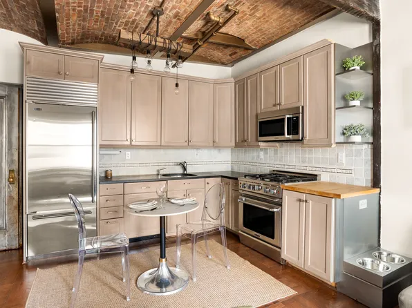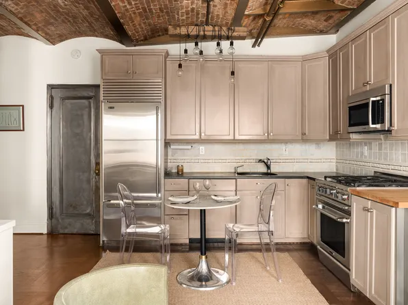 Chic 1 bedroom in one of NYC's best West Side neighborhoods and most desirable historic buildings; The Osborne. Newly refurbished and in move-in condition. Unique 10.5'+/- vaulted brick ceilings. Top floor, bright, lovely renovated kitchen alcove with skylight including Bertazzoni range, Sub Zero fridge, original wood floors in excellent condition. Building boasts roof deck where you can watch the ball drop on New Years Eve and a new gym.
