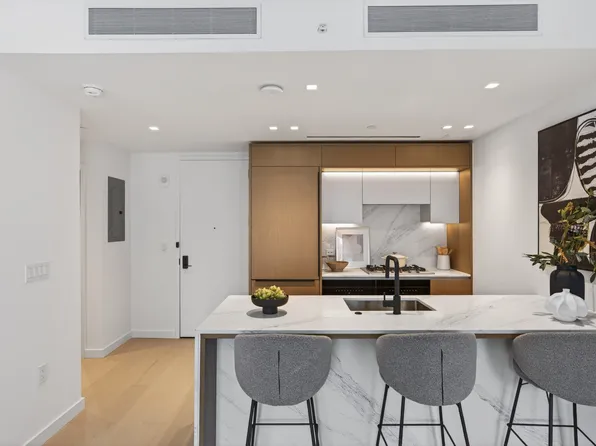 This well-designed 639-square-foot one-bedroom, one-bathroom condo offers an open kitchen and living room and overlooks the serene private garden from its south-facing exposure. The Perrie is a full-service development with a streamlined purchase process and uniquely flexible ownership policies.