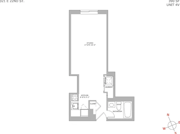 Studio apartment in a doorman building with elevator and laundry in Gramercy Park.