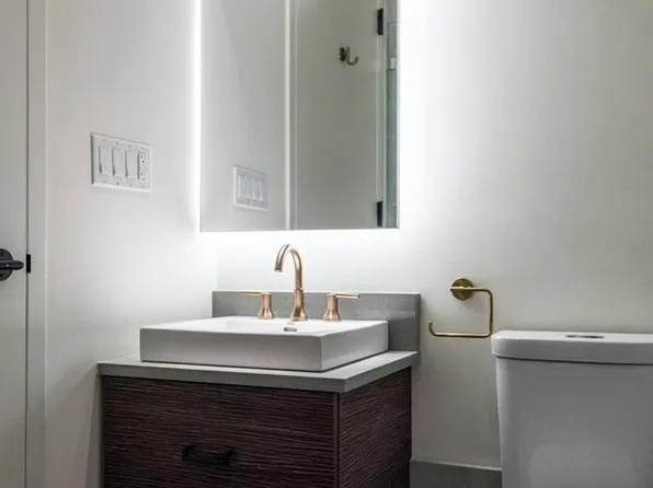 Unit 123 – a unique live/work residence spanning three levels, with oversized windows overlooking a serene, manicured garden and soothing water fountain. Available for early September move-in!
