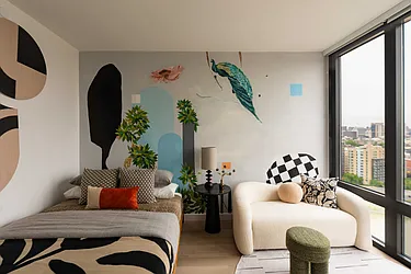 The Smile brings its bold and bright design to Harlem. The unique facade hugs 126th Street, gently curving to resemble the welcoming grin of a smile.