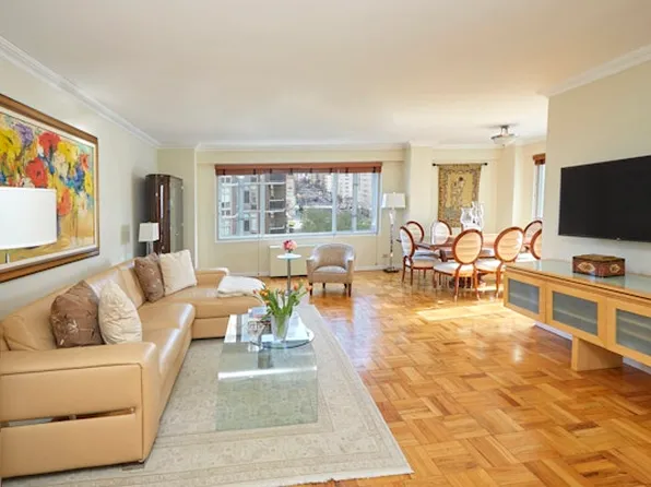 Flexible space, two or three, triple exposure. Over twenty-eight feet of living plus separate dining/home office/bedroom. Private balcony. Windowed dual entry kitchen, a cook's delight! Two king sized bedrooms, main with en-suite windowed marble bath. Custom closets throughout including walk-in. Prime Upper East.