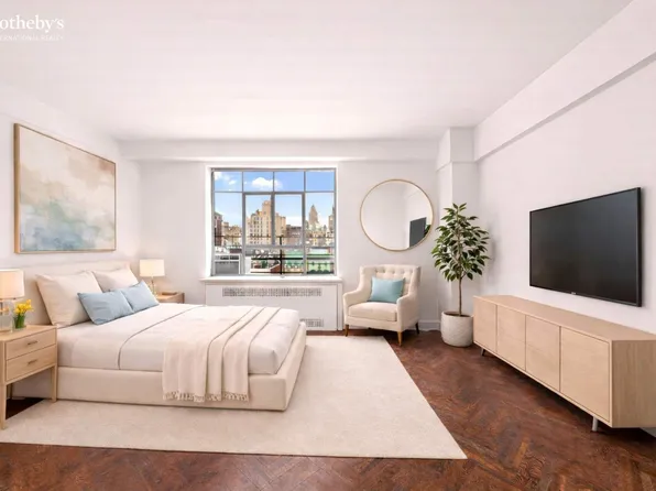 A blend of European elegance, prewar charm, and modern luxury with open Upper East Side views. The residence features ash herringbone floors, double crown moldings, custom lighting, and a marble foyer with a chandelier.