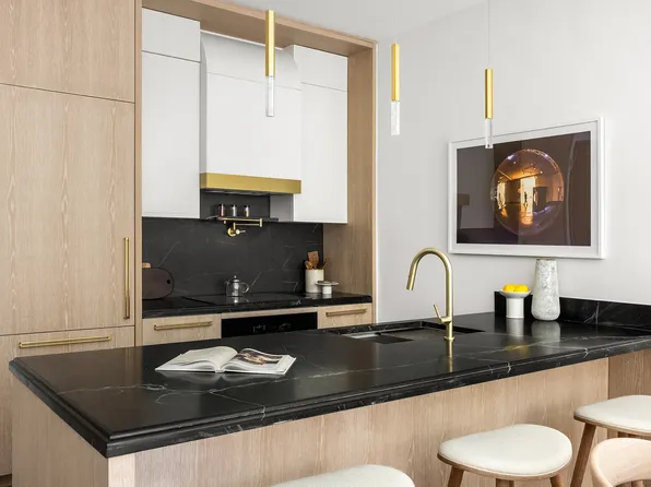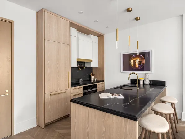 Residence 5C at The Treadwell is a spacious studio offering an inviting, east-facing view that fills the space with morning light. This luxurious home features 10-foot ceilings and large, floor-to-ceiling windows, creating an open and airy ambiance. With two walk-in closets, there’s no shortage of storage, making it as functional as it is beautiful.