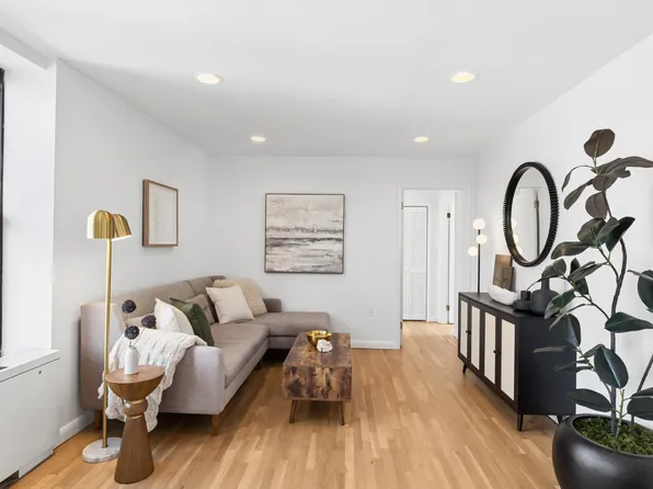 Here's a residential rarity: A stretch-out pre-war space with a coveted, expansive horizontal layout. Five big windows give bright, architectural views -- just above the treetops -- and beautifully enhance the downtown/uptown vibe of this winsome condo.