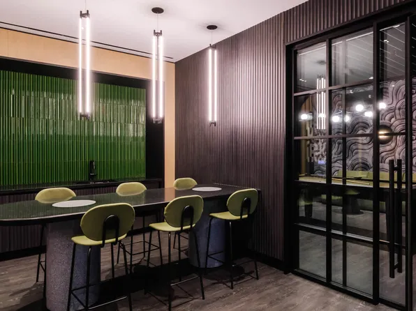 Located in the heart of Chelsea, Apartment 6B at The Vanguard Chelsea offers a luxurious living experience in a newly renovated studio apartment. This corner unit boasts premium 10.5 ft ceilings and double exposure, filling the space with natural light throughout the day. The galley kitchen features high-end finishes curated by the renowned COOK+FOX Architects, including Caesarstone countertops and a kitchen window offering stunning city views.