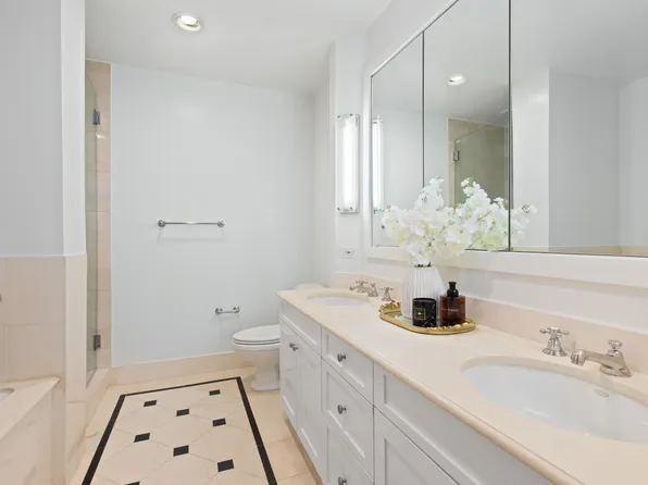 Floor to ceiling windows offer spectacular city views from high floor 2 bedroom/2 bathroom residence. The corner great room offers designated living and dining areas and stunning north/east exposures. An eat-in-kitchen boasts a Viking oven, Bosch dishwasher, Subzero fridge, granite counter-tops and wine cooler. A full sized washer/dryer is conveniently located adjacent the kitchen.