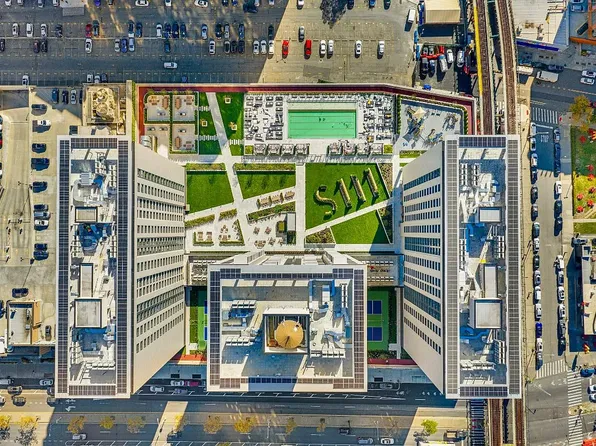 Full amenity package: fitness center, rooftop deck, courtyard, resident lounge