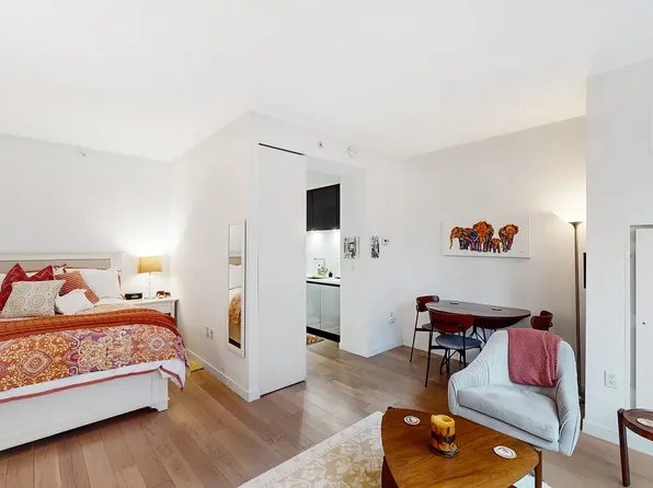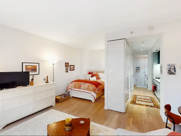 Residence 202 is a thoughtfully designed 469 sq. ft. studio with a serene north-facing view overlooking a lush, landscaped garden-offering a peaceful, unexpected retreat in the heart of Hell's Kitchen.