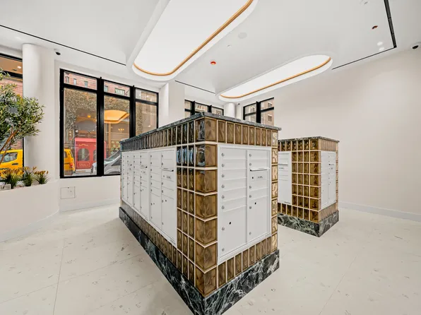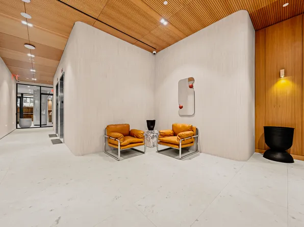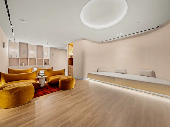 Residence PH2 is a meticulously designed 664 sq. ft. one-bedroom apartment with east-facing exposure, allowing abundant natural light to fill the space while offering stunning views of the Midtown skyline. The separate galley kitchen is adorned with Calacatta marble countertops and backsplashes, custom cabinetry with generous storage, and high-end appliances by Miele and Bosch.