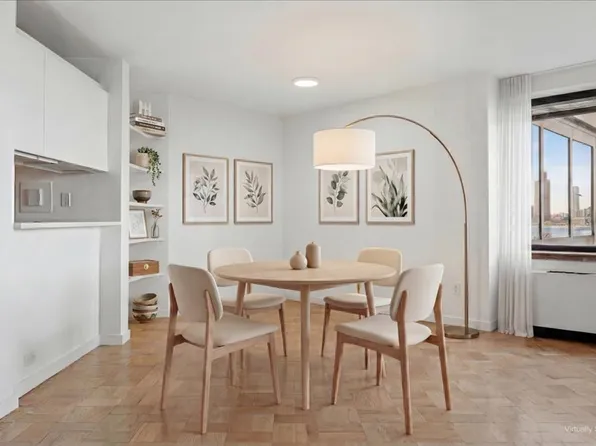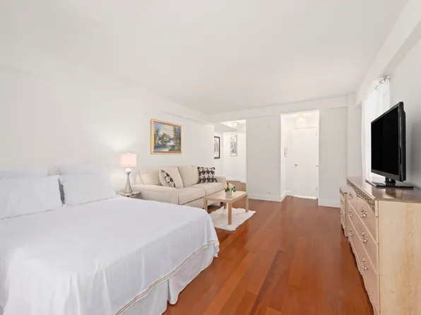 River Views From Your Private Balcony This spacious alcove studio gets great light throughout the day and River Views from your Private Balcony. The large sleeping alcove area has a closet, fits a queen size bed and night stand and dresser. Full-size kitchen with Stainless Steel Appliances. Lots of closet space.