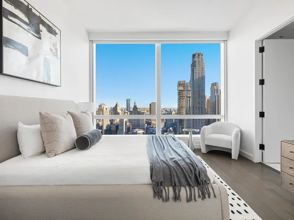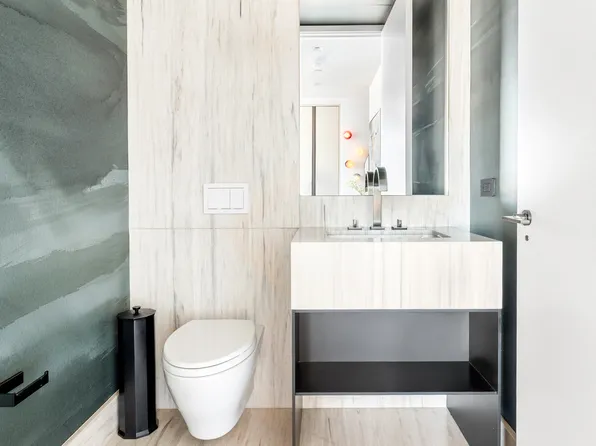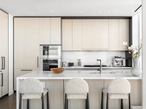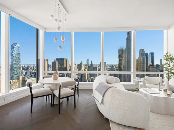 Set ~533 feet above street level, this sprawling two-bedroom, two- and a half-bath home offers 2,548+/- square feet of gracious living space and three breathtaking exposures of sweeping city and river views. This luxurious tower residence is complete with an oversized eat-in kitchen, ceilings nearly 11” high, and solid oak herringbone floors throughout.