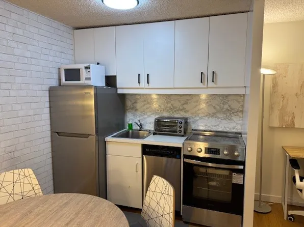 Residence 2KK is a bright South facing 428 sq ft studio with its own 91 sq ft private terrace and direct access to the buildings private "residents only" interior courtyard. The apartment features a pass-through kitchen with new stainless steel Haier refrigerator and a wall of closets offering generous storage. An oasis of calm in the heart of the city.