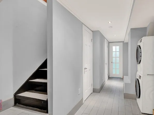 The building offers additional communal outdoor areas, in-building laundry, a gym, and a 24-hour doorman for added convenience.
