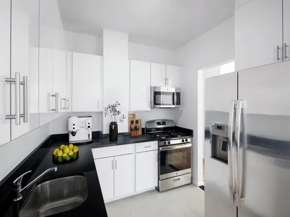 Spacious 1 Bedroom, 1 Bath with a pass-through kitchen, upgraded stainless steel appliances, walk-in closet, high ceilings, and northern exposure with partial river views.