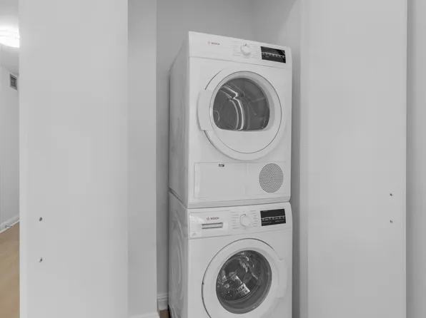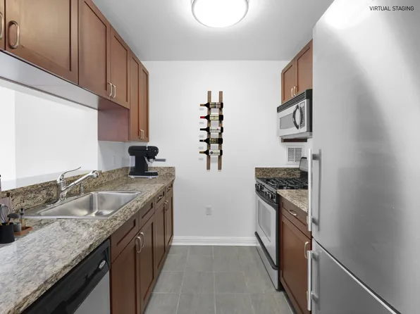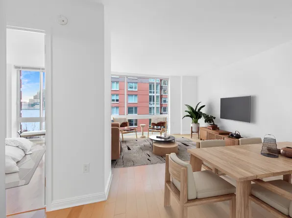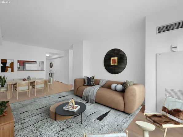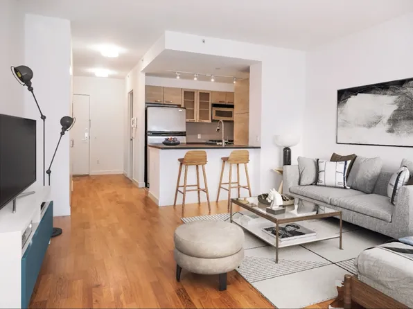 Spacious 1 Bedroom, 1 Bath featuring floor-to-ceiling windows, a gourmet pass-through kitchen, upgraded strip wood flooring, spacious closets, upgraded solar shades, and northern exposure.