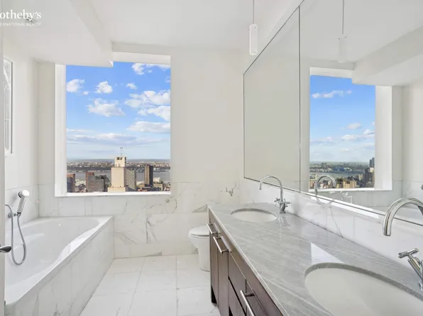 Upon entering the spacious foyer—featuring three closets and a striking marble floor with an elegant floral inlay—residents and guests are immediately drawn to breathtaking views of Central Park through oversized windows.