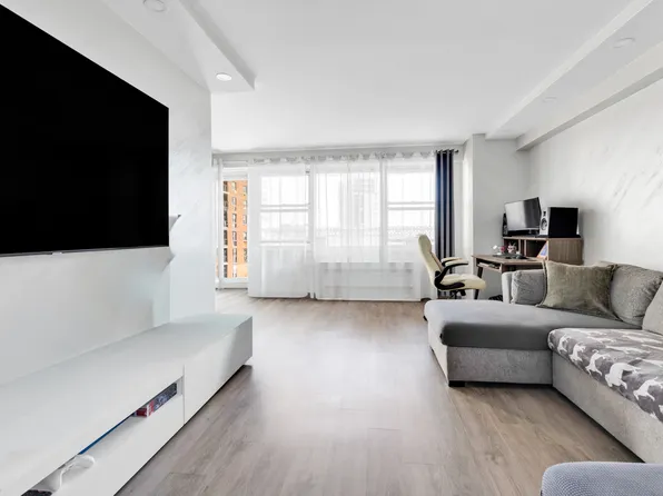 Located in a well-maintained building with 24-hour security, a recreation room, on-site management, and a live-in super.