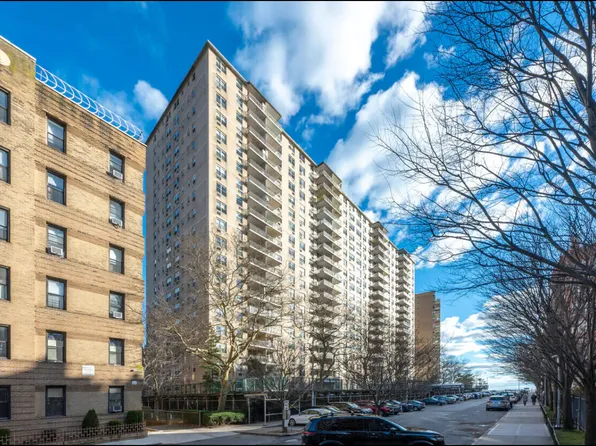 Extremely bright 2-bedroom, 1.5-bath apartment on the 15th floor with a large terrace at the Trump Village Section 4 complex. 1,100 sqft. Maint. $1,168/month (includes gas and electricity). Excellent layout with amazing high-floor views in an excellent building! Reduced Ask of $440,000. A truly Rare Opportunity!!