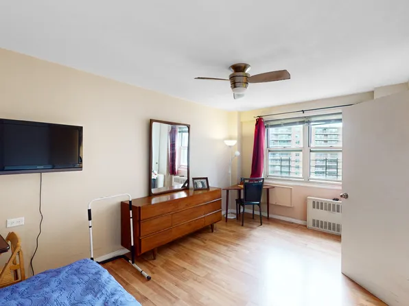 This spacious 1-bedroom/1-bath is on the 13th floor and is very bright, quite north exposure. Best 1-bedroom layout, with the largest bathroom. Four large closets including 2 closets in the bedroom. The apartment is about 770 SQFT.