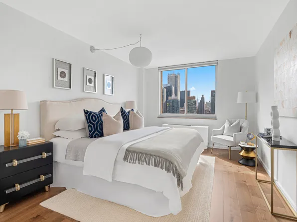 Residence 3T at 350 West 50th Street with 769 square feet, is one of the largest one-bedroom units at The Residences at Worldwide Plaza. This corner unit has walls of windows, North and East exposures, marble bath and large windowed renovated kitchen and lots of spacious closets. The apartment is sunny and quiet with city skyline views. New hardwood floors throughout. All of the window frames and windows are new.