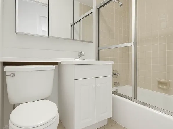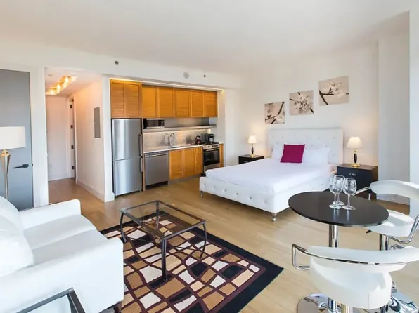 This charming studio apartment offers a functional layout and timeless finishes that blend style and convenience. The kitchen features sleek cabinetry with a hidden dishwasher, while the tiled bathroom extends from floor to ceiling. The unit also includes an in-unit washer and dryer for everyday ease.