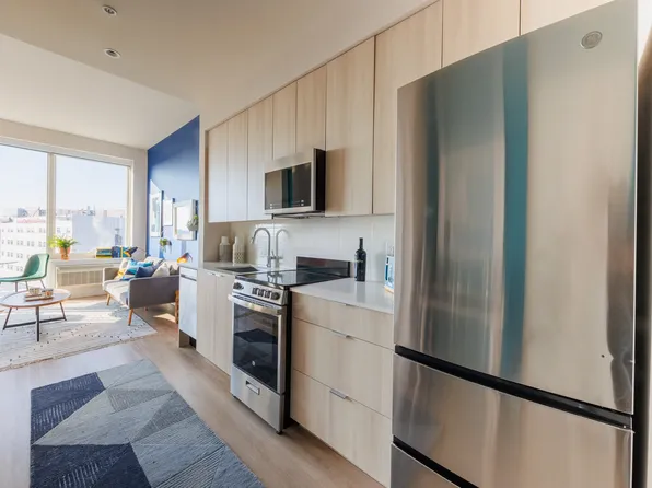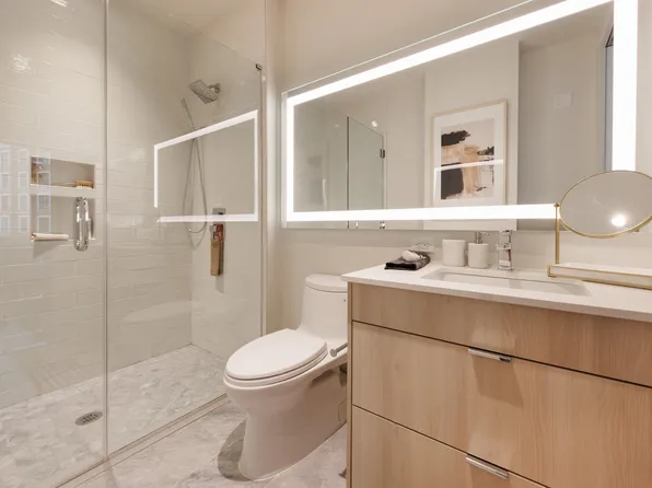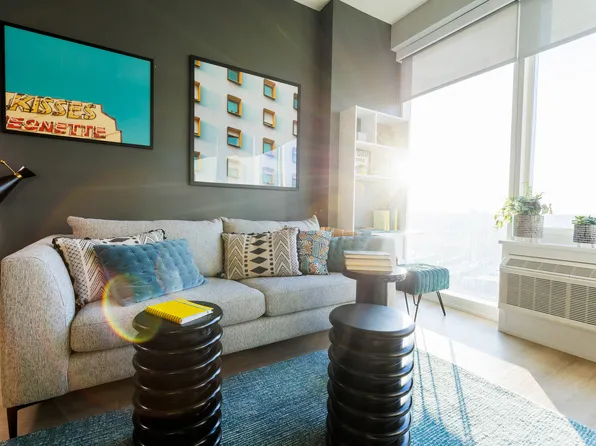 Enjoy the vantage point of Manhattan and the Statue of Liberty from our 45th-floor sky lounge. Find your city oasis in our social, fitness and entertainment spaces that extend out to the zero-entry pool complete with fountains and a waterfall. Hang out with friends around our fire pits or with your four-legged friend at our dog run.