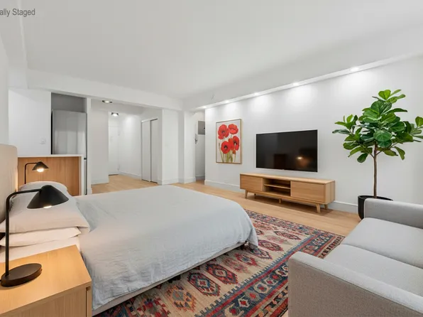 Nestled in the vibrant heart of Kips Bay, Apartment 2S is a quiet, south-facing studio featuring an updated kitchen. The thoughtfully arranged layout affords a dedicated dressing area featuring generous closet space. The kitchen, a model of efficiency and style, boasts ample cabinetry, expansive counter space, and is enhanced by updated appliances.
