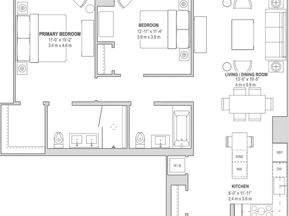 Step inside residence 5A at 51 Walker for the ultimate Tribeca loft experience. This 2-bedroom, 2-bathroom home spans 1,550 square feet and offers unparalleled northern and southern exposure.