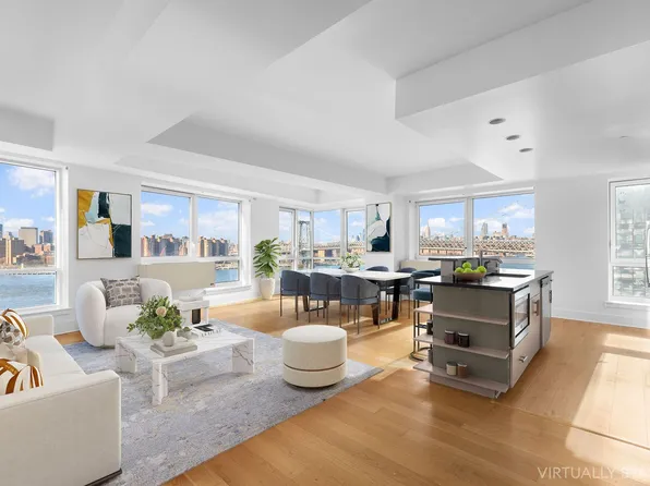 Welcome to Residence 712 A new, unique corner 3-bedroom, 2-bathroom sundrenched apartment with floor-to-ceiling windows facing south and east. Enjoy this expansive layout and views of historic Greenpoint, green spaces and the East River. The primary bedroom features a walk-in closet and ensuite bathroom. The well-appointed kitchen, spacious living room and luxury finishes throughout this home give new meaning to bespoke urban living.
