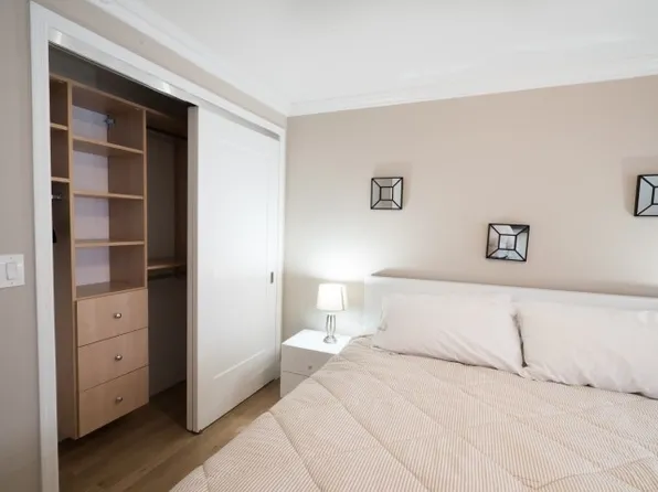 This sun-filled home features a modern open kitchen with top-of-the-line stainless steel appliances, beautiful herringbone hardwood floors throughout, and excellent use of space.